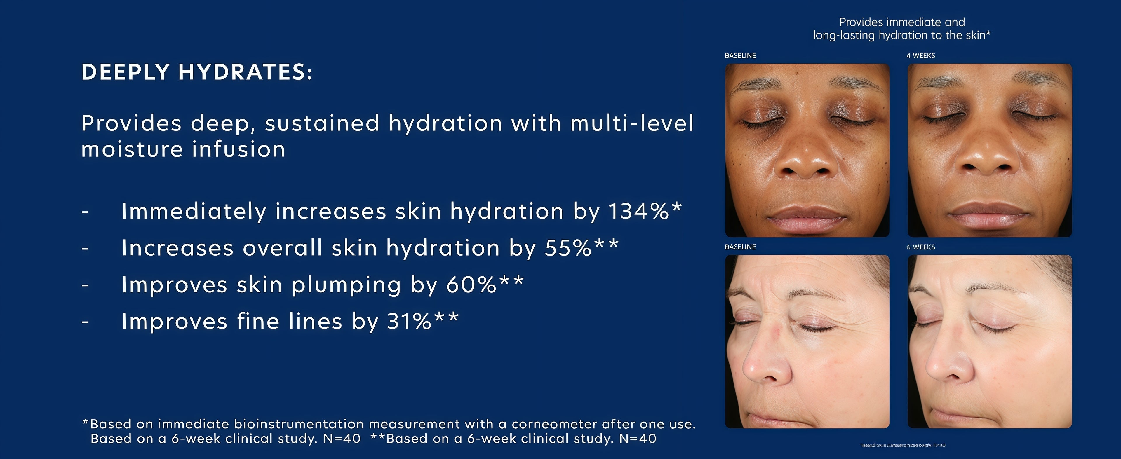 This advanced serum delivers multi-level hydration that works instantly and over time, helping your skin retain moisture while boosting its natural hyaluronic acid production. Clinically shown to increase skin hydration by up to 50% within 24 hours, it deeply quenches dry, textured, or tired skin for a smoother, more youthful look.*